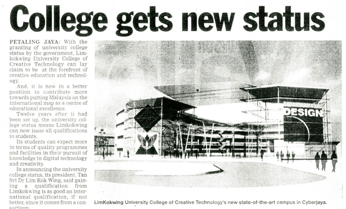 In 2002, Limkokwing was the first private college in Malaysia to be recognised as a University College, then becoming a full-fledged University by 2007, opening up the doors to others and changing the private tertiary education landscape into the vibrant industry it is today.